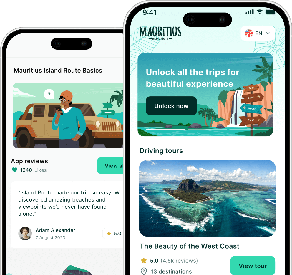 Discover Mauritius freely and confidently with Island Route, your self-guided audio tour app built for modern travellers.